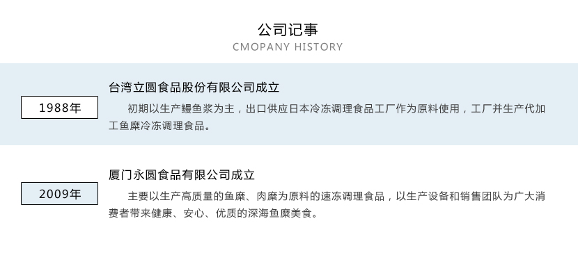 公司于2009年11月取得福建省質量技術監(jiān)督局QS生產(chǎn)許可,并于2010年8月底通過ISO2200:2005及HACCP等國際質量認證。于2011年2月取得CIQ認證